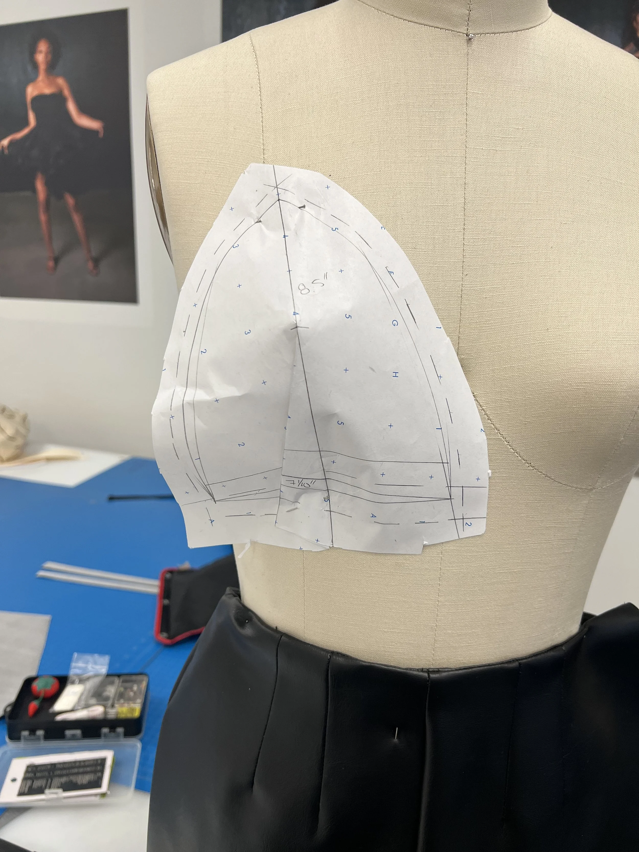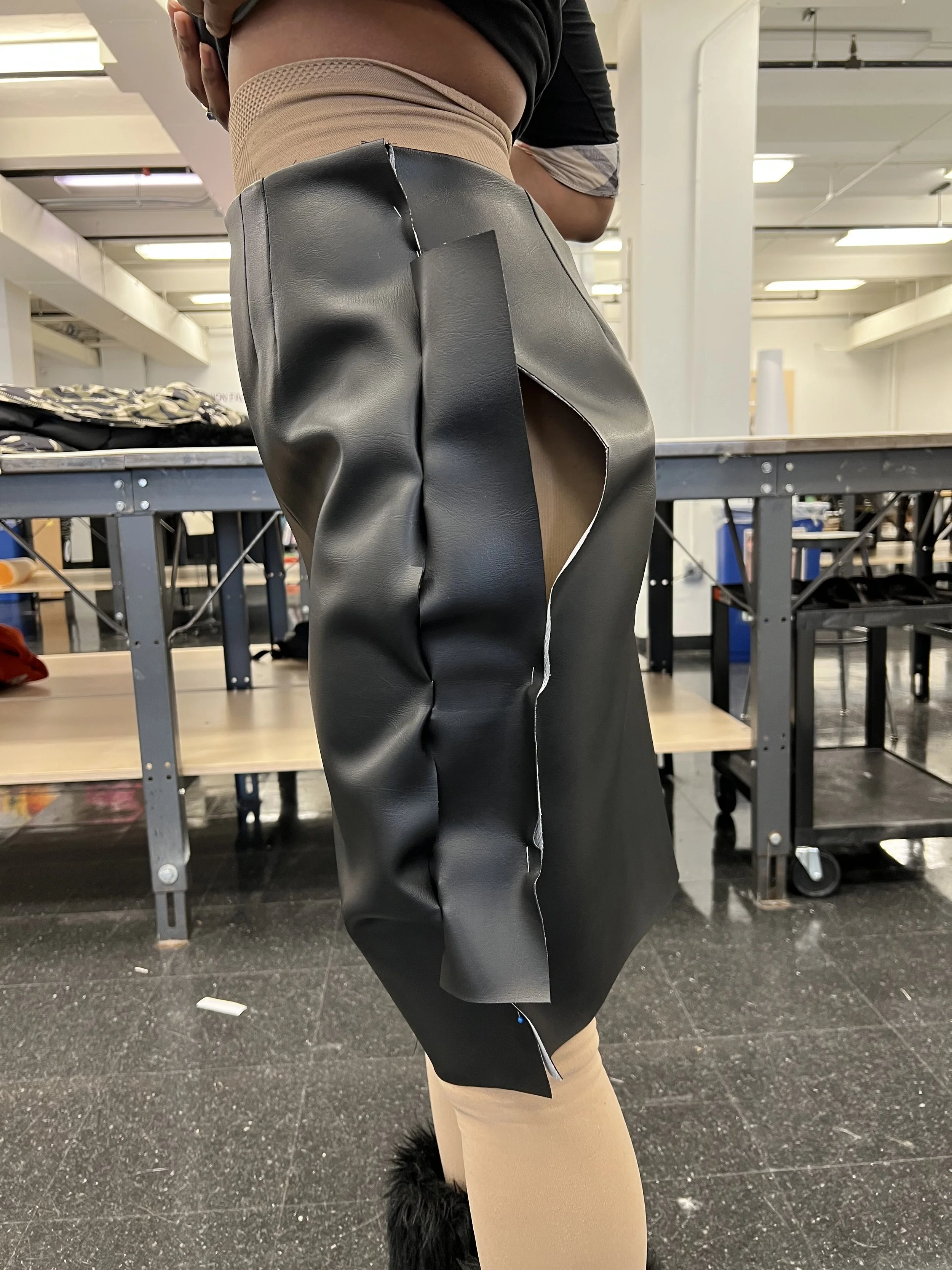 The fitting went well, there was a fitting issue around the hip area, after some trouble shooting and giving Shanti all the options, she opted for the gusset on a singular side of the skirt to remedy this.