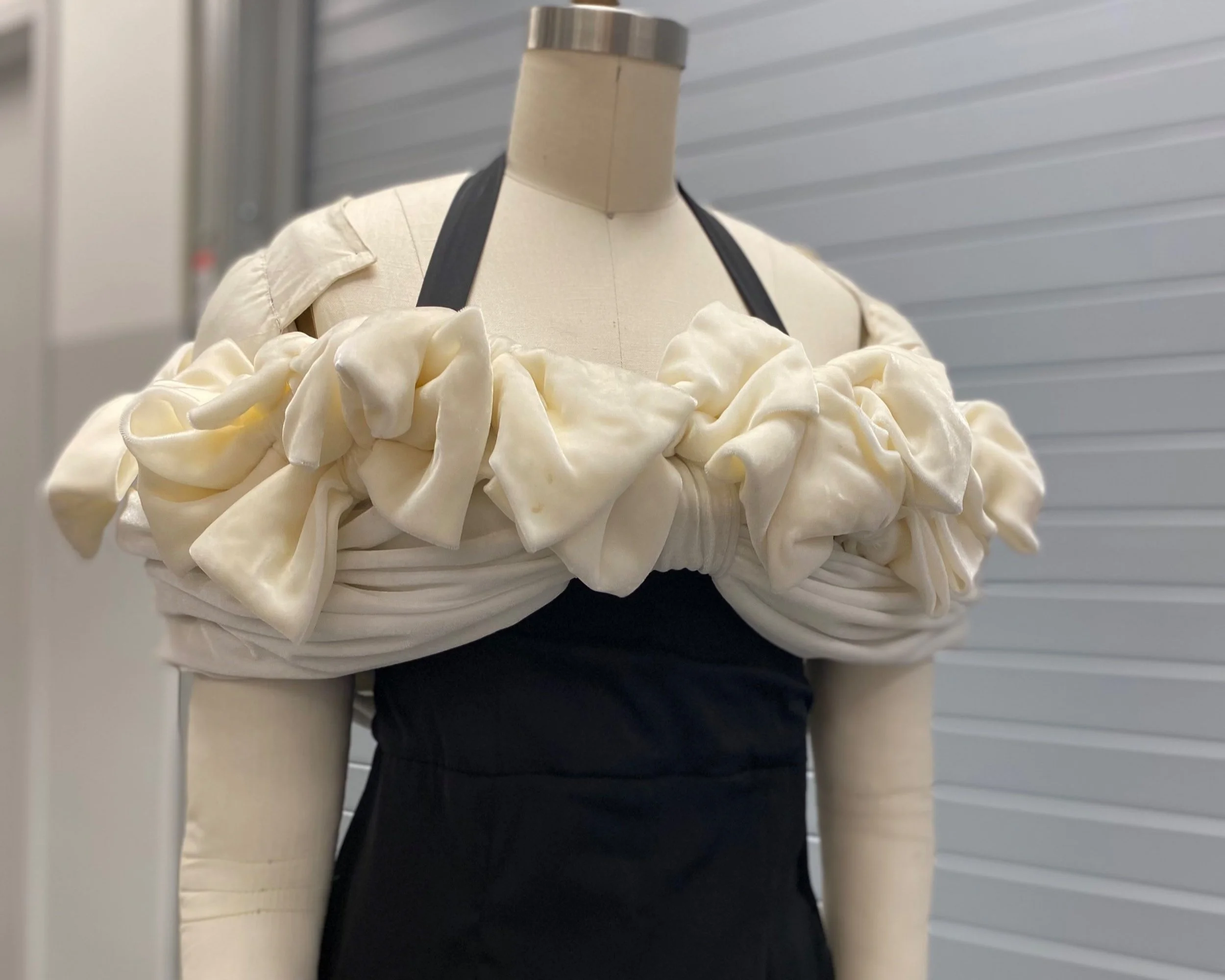Shanti reached out through a mutual friend with a concept for a garment. She didn’t have a set budget to work with, comunicating that the price wouldnt’ be an issue. She wanted her piece communicate with her personality- sexy, fun, and high functioning. Concerns we had were bust coverage and functionality of each piece, but in the end we managed to overcome those challenges.