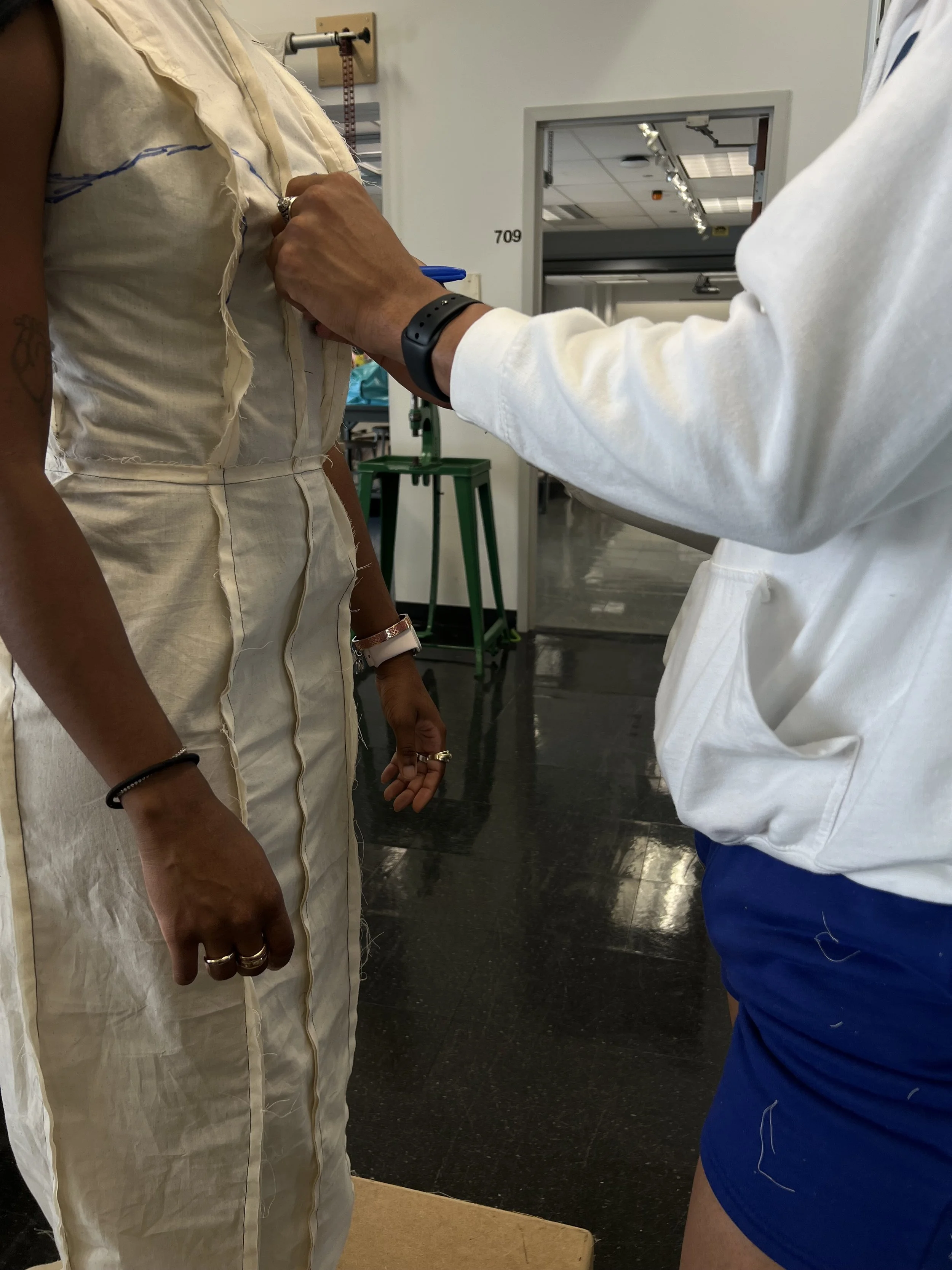 Michael (Mikey) Smith is a Chicago-based designer and tailor, currently a senior in the Fashion Design BFA program at Columbia College Chicago. He began his journey in third grade when his teacher, Mrs. Fairfield, gifted him his first sewing machine—a moment that sparked a lifelong passion. Under his emerging brand, Sema'J Designs, Mikey explores traditional tailoring, clean silhouettes, and a blend of masculine and feminine aesthetics. His experience includes up-cycling garments for clients, tailoring for a fashion show at the Wonder Museum, speaking alongside RuPaul’s Drag Race winner Shea Coulée on queerness in the fashion community, and creating a custom piece for Chicago’s Gourmet Week with materials from The Tie Bar.