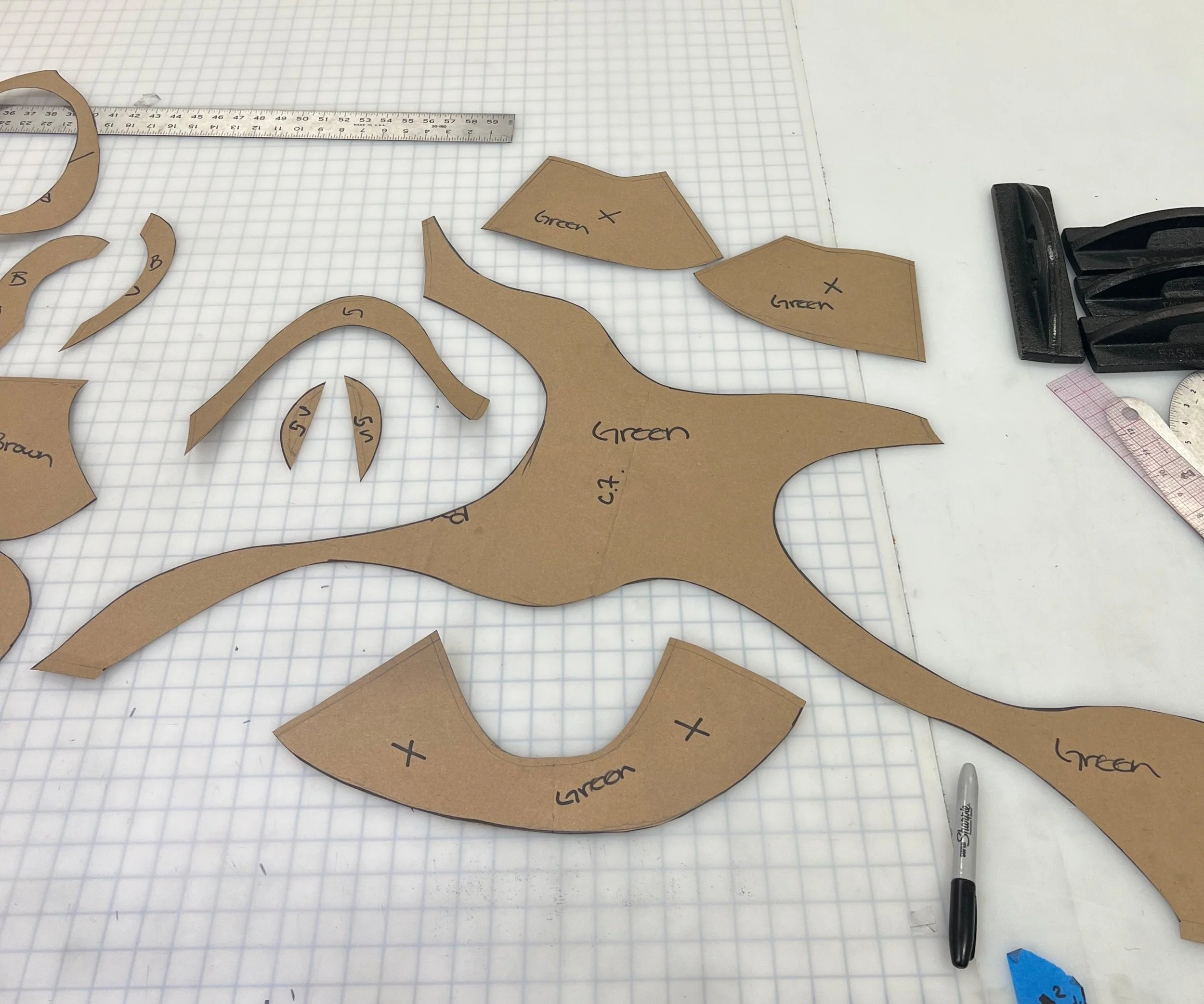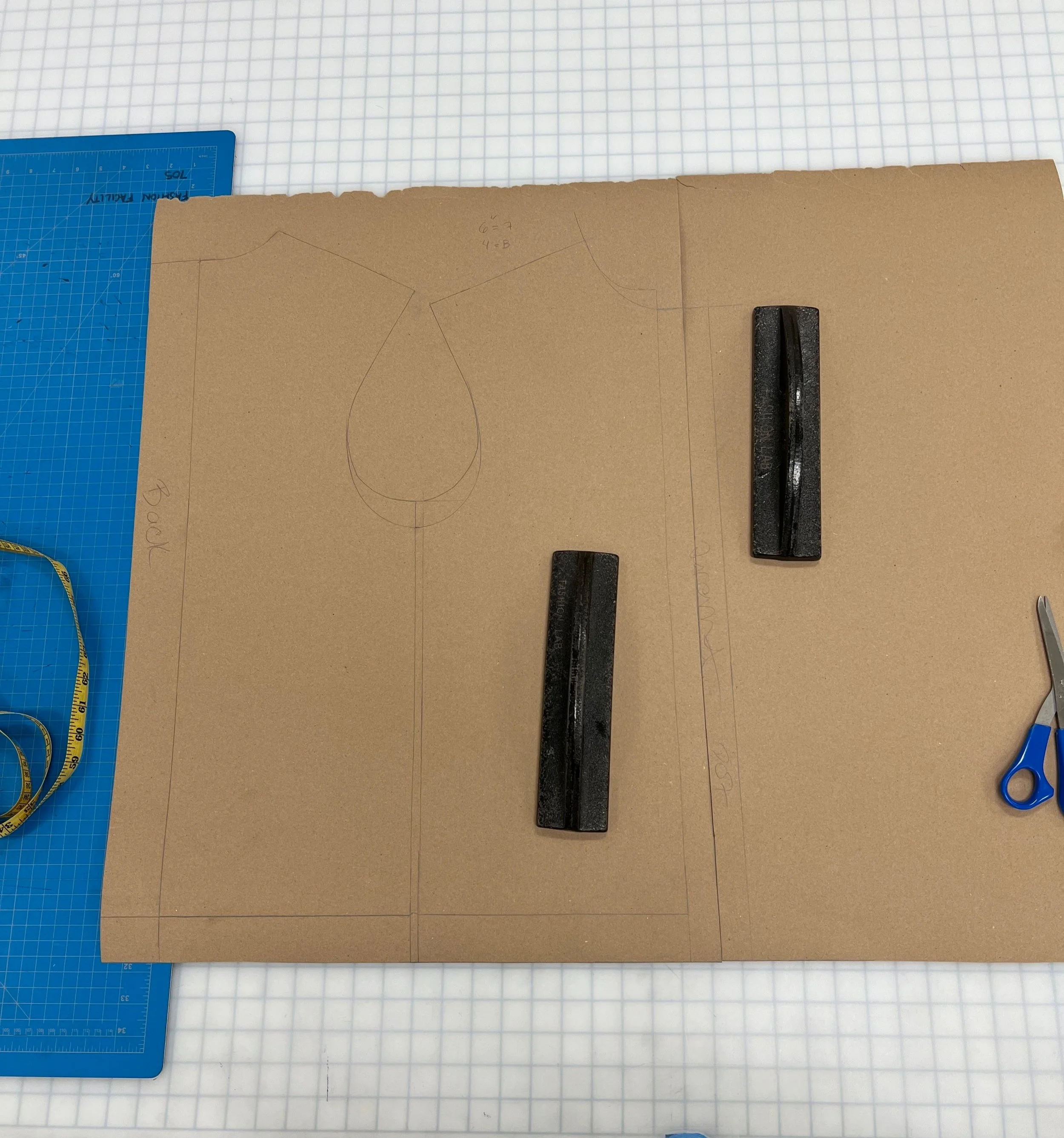 From the style lines I cut the muslin apart and used the pieces to create a pattern that’ll be used to to draft a finalized pattern